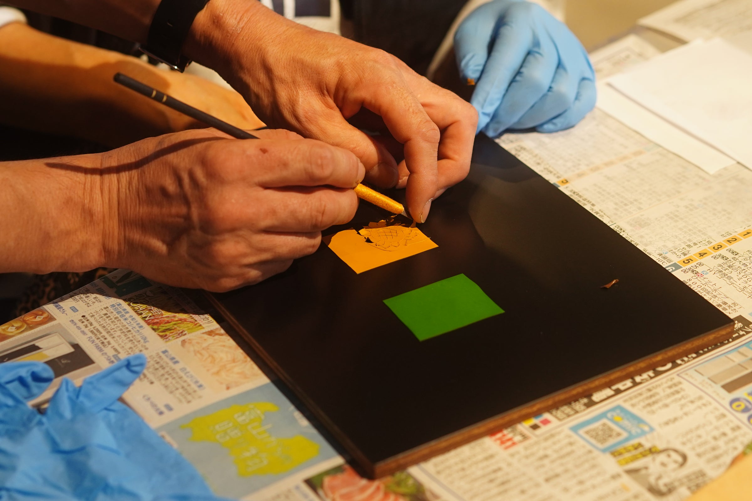 琉球漆器の伝統的な加飾技法「堆錦(ついきん)」を角萬漆器で体験します。